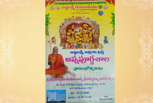 Ashtalakshmi akshaya trust annapurna shala inauguration by Sri Sri Sri Jagathguru Shankara Charya Sri vidhyaranya Bharathi Swami on 15-02-2020