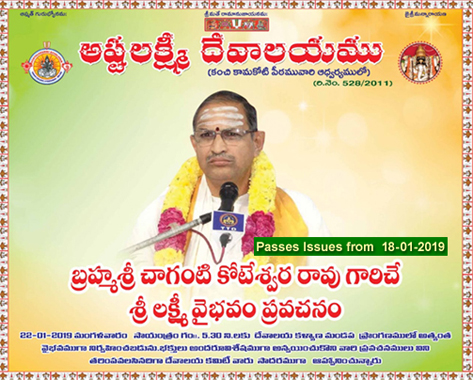 Ashtalakshmim Temple Committee Welcoming all the devotee to attend the grand celebration of Brahmasri Chaganti Koteswara Rao Gari Pravachanam on Sri Lakshmi Vaibhav on 22.01.2019 Tuesday Evening 5.30PM Request all devotee to attend and make it Grand success.