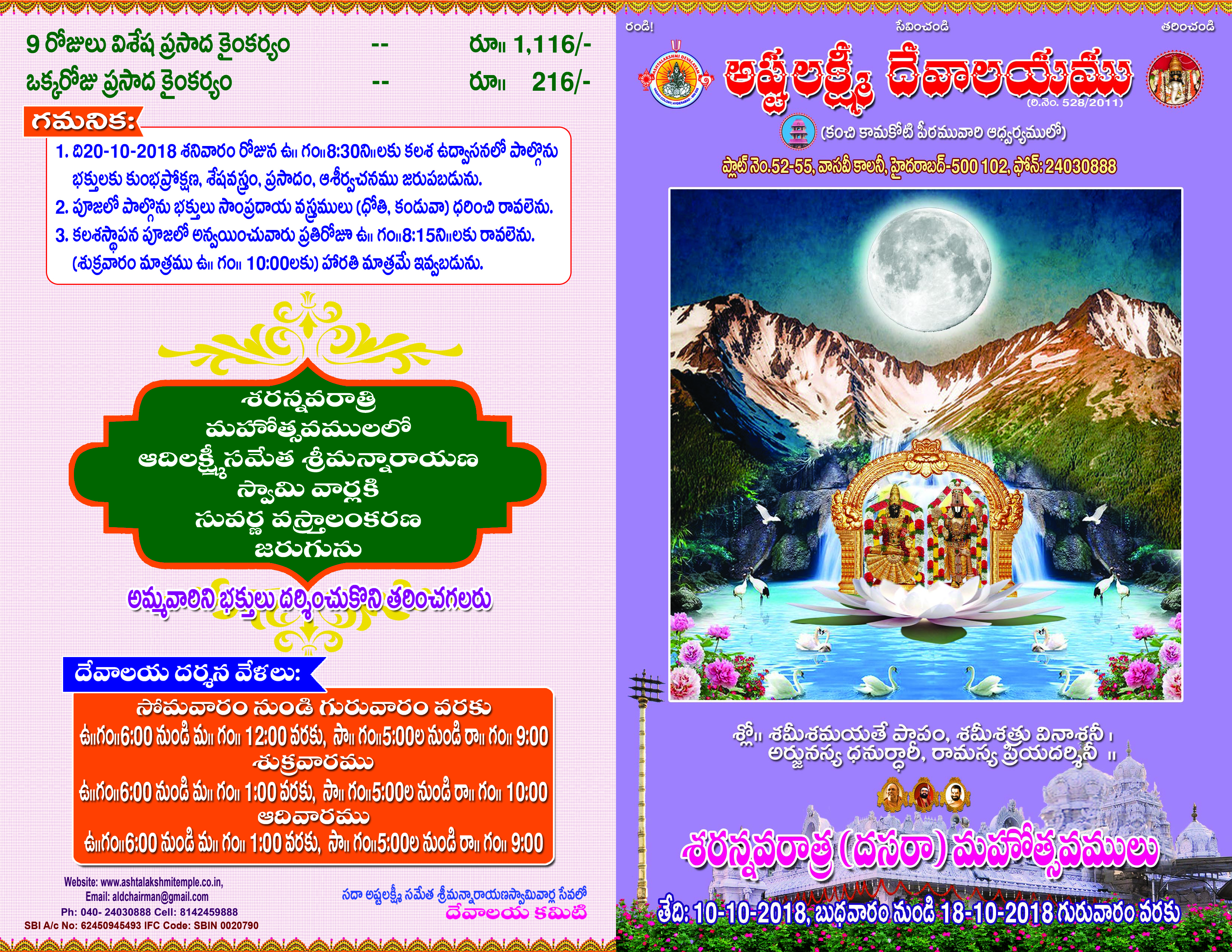 dasara Mahotsavams and naravaratiMahotsavams 10-10-2018 to 18-10-2018