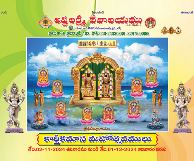 Karthika Masam Mahotsavamulu Date:02-11-2024 Saturday to 01-12-2024 Sunday