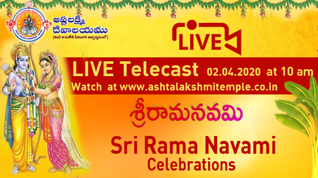 Sri Rama Navami 2020 Celebrations by Ashtalakshmi Temple on 02.04.2020 at 10am